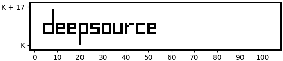 If you take that absurd thing above, and move around in the cartesian plane for the coordinates (0 \le x \le 106, k \le y \le k + 17), where (k) is a 544 digit integer (just hold on with me here), color every pixel black for True, and white otherwise, you'd get: